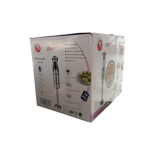 گوشت کوب 9 کاره مایر مدل MR-1100 از یک گوشت کوب میله ای ، یک ظرف غذاساز با تیغه و صفحه استیل ، یک پارچ و یک همزن پره ای استیل تشکیل شده است. این دستگاه می تواند تمامی مواد سفت و نرم، سرد و داغ را در عرض چند دقیقه بطور کامل به مخلوطی یکدست تبدیل کند.علاوه بر آن کاسه غذاساز این دستگاه طراحی شده که یک درب پلاستیکی بسیار مقاوم روی آن قرار می گیرد. بر روی درب این غذا ساز یک لوله نسبتا بزرگی تعبیه شده که از طریق آن به راحتی می توان مواد را درون مخزن ریخت و در عرض چند دقیقه بطور کاملا یکدست خرد و مخلوط کرد. درضمن جهت ثبات و استحکام بیشتر یک نوار لاستیکی دور تا دور کف کاسه بکار رفته شده تا در حین استفاده ظرف به هیچ عنوان سر نخورد و سرو صدا ایجاد نکند که این هم یکی از ویژگی های مهم دستگاه بشمار می اید.تمامی قطعات این دستگاه به جز بدنه اصلی را می توان داخل ماشین ظرف شویی شستشو کرد. برای له کردن و خرد کردن انواع میوه ها و سبزیجات ، مخلوط کردن ، به هم زدن انواع مواد و حتی پودر کردن استفاده کرد.مناسب برای خرد کردن سبزیجات ,آجیل , پیاز ,گوشت , پنیر و …می باشد.این محصول از جنس فولاد ضد زنگ است که مقاومت بسیار بالایی دارد.از تیغه های فوق العاده تیز برخوردار است که به راحتی می تواند هر نوع ماده غذایی را برش دهد یا خرد کند.موتور این گوشت کوب از موتوری بی صدا بهره می برد که قدرت 1000 وات را به آن می بخشد.با کمک نوار پلاستیکی که دور تا دور کف دستگاه کشیده شده است در زمان کار شما هیچ گونه لرزش یا سروصدایی را نمی بینیدکه امتیازی بسیار عالی برای این گوشت کوب چندکاره محسوب می شود. با کمک تیغه های استیل ضد زنگ تیزی که دارد به راحتی می تواند مواد غذایی را خرد کرده و ترکیب کندو در کمترین زمان مواد غذایی را همان گونه که دلخواه و انتظار شماست آماده کند.موتور این گوشت کوب از نوع بی صداست که در هنگام کار شما را از شر صداهای گوش خراش آسوده می کند.همچنین بدنه و تیغه های آن از طراحی ارگونومیک بهره می برند که عمر محصول را بسیار بالا می برند.شما می توانید پس از هر بار کار قطعات این گوشت کوب را باز کرده و به صورت دستی یا در ماشین ظرفشویی شستشو دادهو سپس به راحتی مجددا قطعات را سرهم کرده و برای استفاده های بعدی خود آماده کنید.غذا ساز مایر مدل برای خرد کردن گوشت، پنیر، سبزیجات و پیاز بسیار مناسب است.